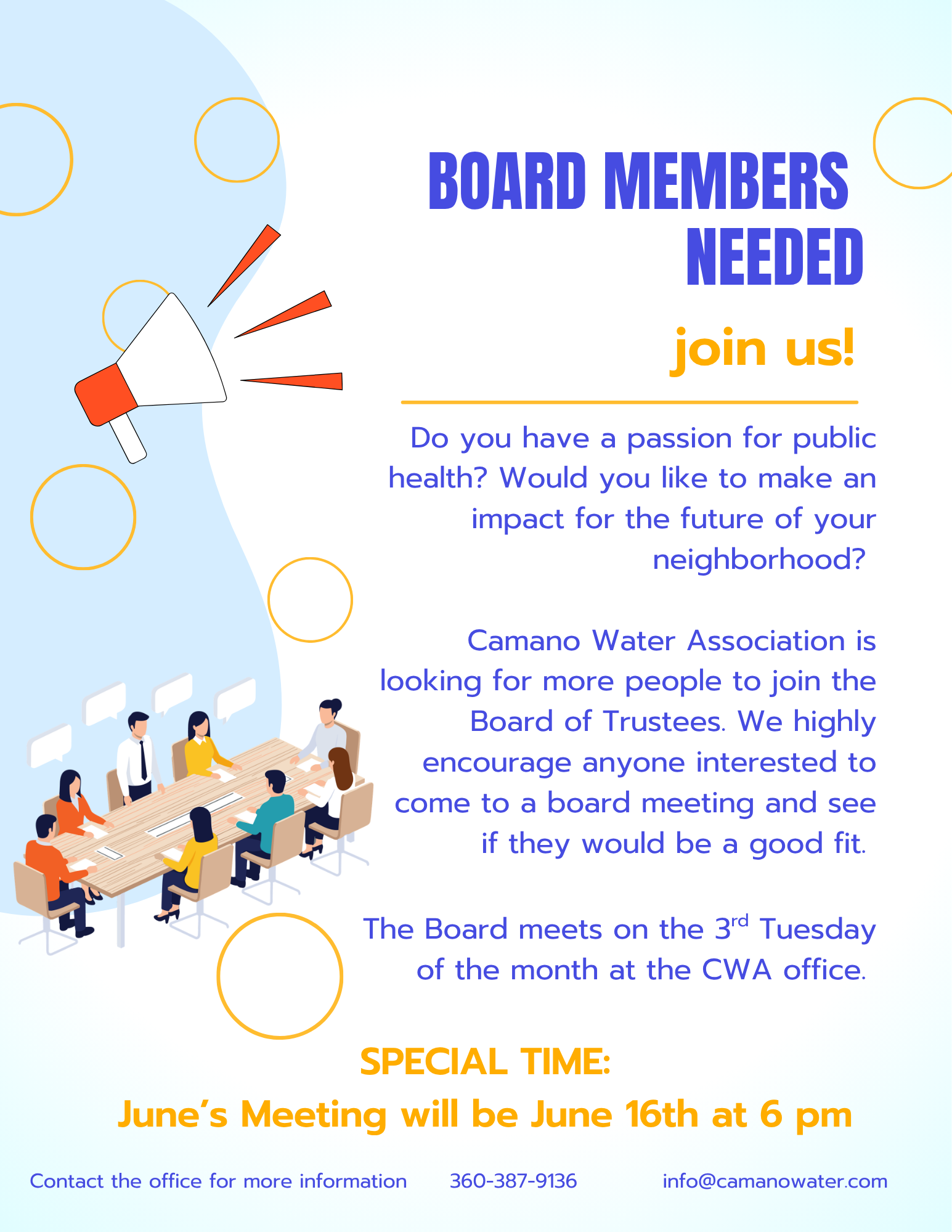 The mission of the Camano Water Association is to provide members with ample, good quality, domestic water at a reasonable cost.